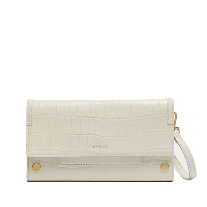 AJ Crossbody Clutch, Calla Lily Crocco and Brushed Gold Tone Hardware by Hammitt